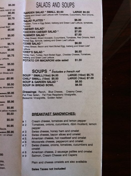 Please call store for soups of the day ()- Soups available after am